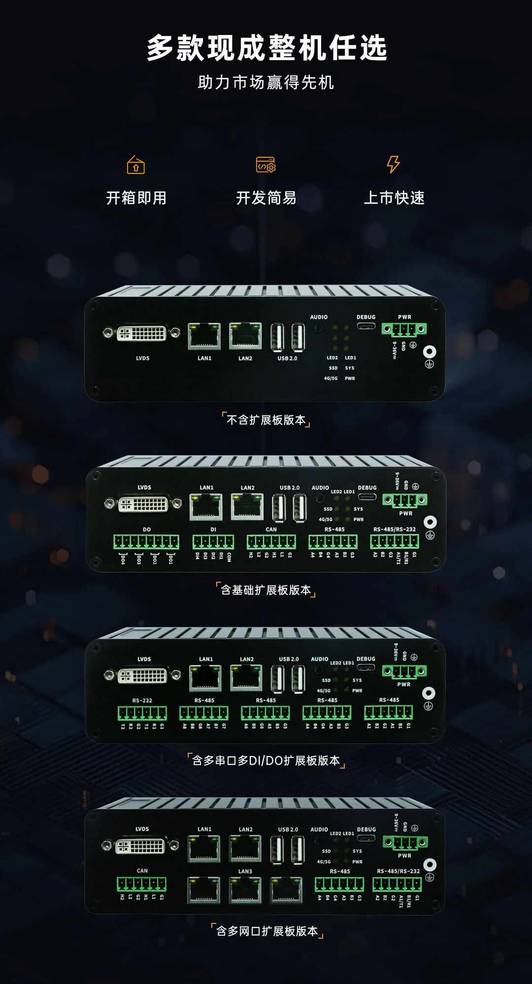 开发者最烦“接口不够”?而这款嵌入式工控机直接把工业常用接口全集成,包含4g/5g、wi-fi、bluetooth、ethernet、usb、micro sd、nvme ssd、lvds out、mipi dsi、audio、led、key、rtc、buzzer、debug等,省心又省事!