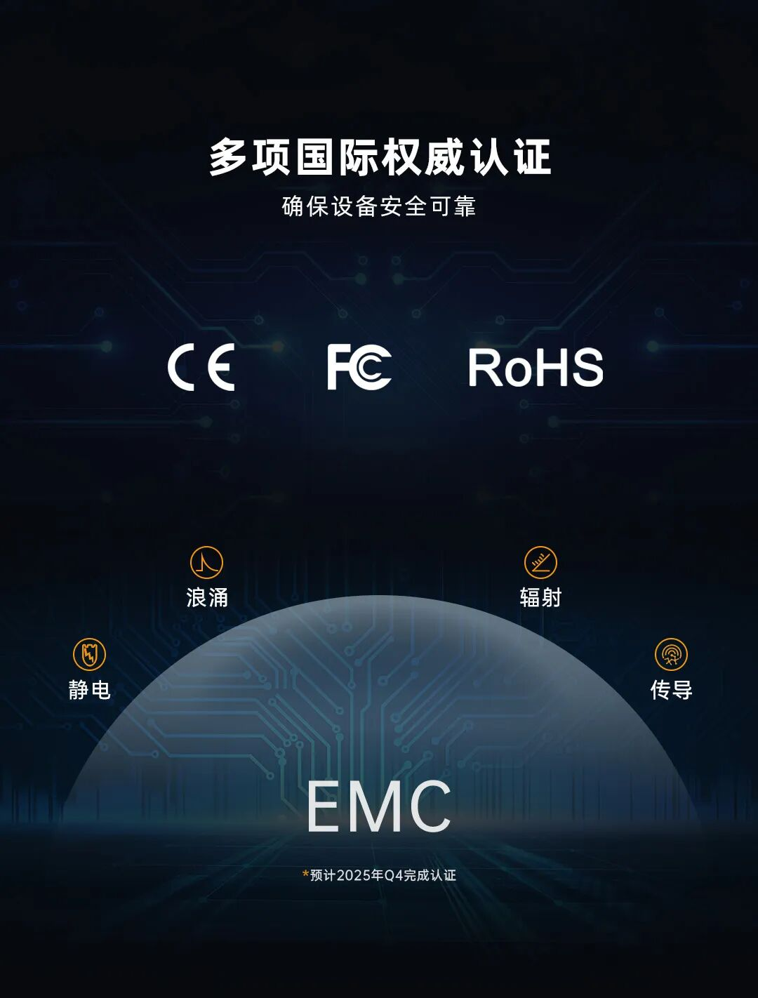 整机通过ce、fcc、rohs等认证,符合emc电磁兼容测试要求!考虑到产品一般需要经过多次emc整改才能量产,这将显著减少客户自行解决emc问题带来的不确定性和重复投入,可大幅缩短研发周期、减少研发成本,助力产品更快投入市场!